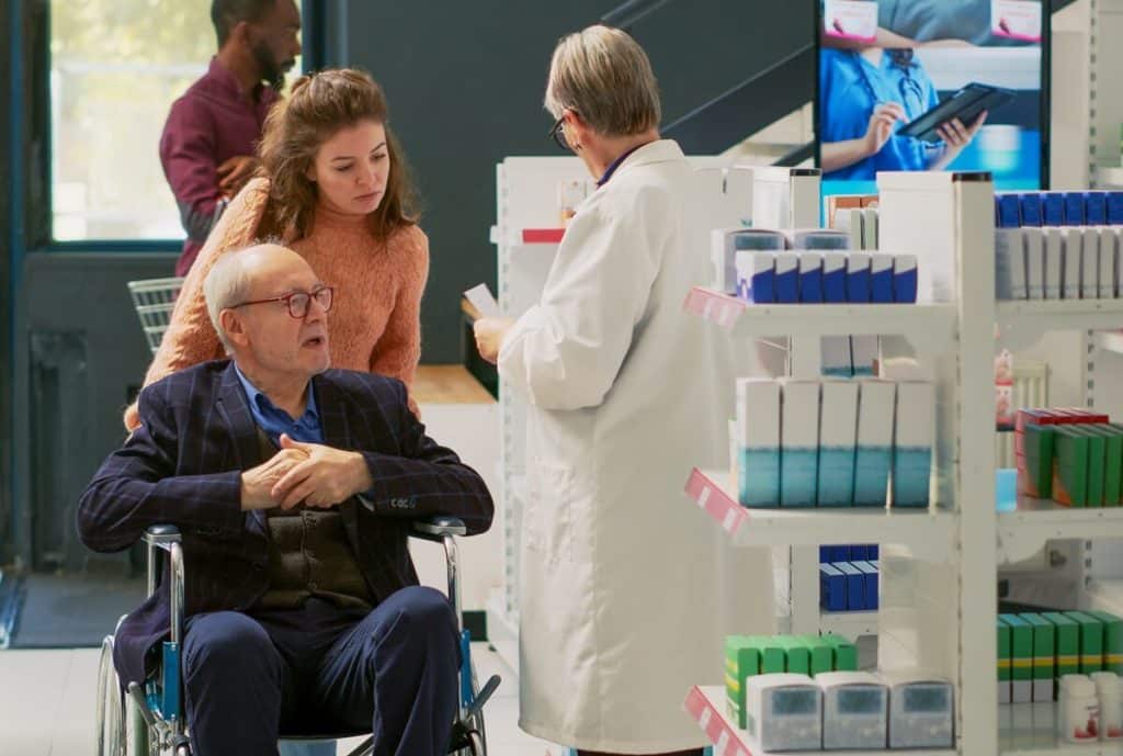 Le pharmacien conseille également sur le choix et l’utilisation du matériel médical et paramédical parfois nécessaire au maintien à domicile : lits médicalisés, fauteuils roulants, aides à la mobilité, produits d’hygiène ou de confort. Grâce à son expertise, il aide les aidants à faciliter la vie quotidienne de leurs aidés.